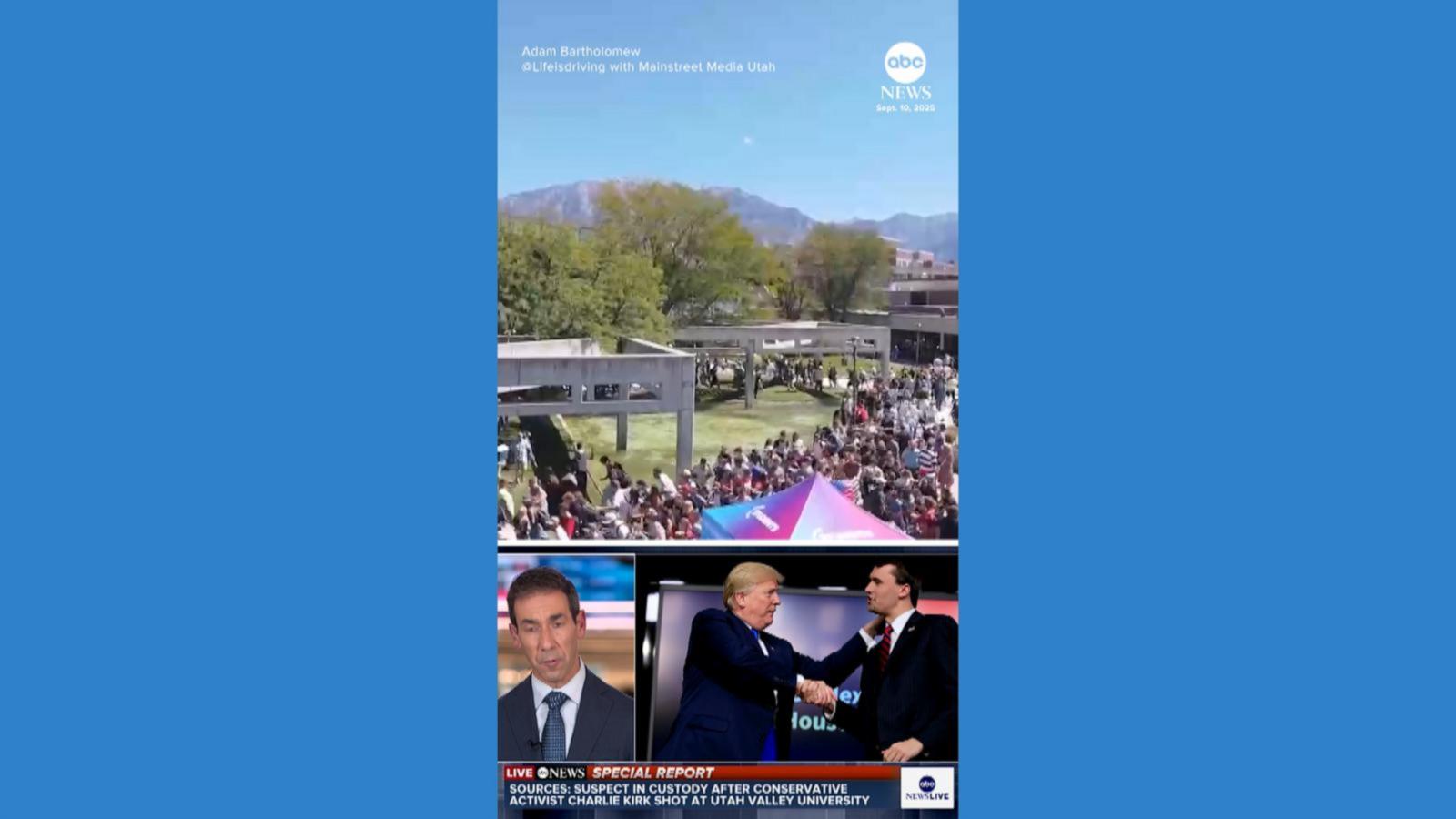 Footage shows a crowd of people running and taking cover after someone shot at conservative commentator Charlie Kirk on the Utah Valley University campus.