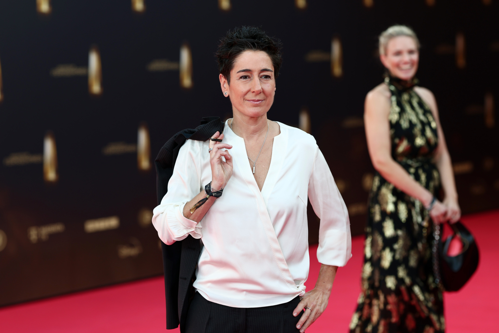 COLOGNE, GERMANY – SEPTEMBER 10: Dunja Hayali arrives for the annual German Television Awards (Deutscher Fernsehpreis) at MMC Studios on September 10, 2025 in Cologne, Germany. (Photo by Joshua Sammer/Getty Images)