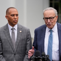 “We want to sit down and negotiate, but the Republicans can’t do it in their partisan way, where they just say it’s our way or the highway,” Schumer said at a news conference following Senate votes Tuesday night.