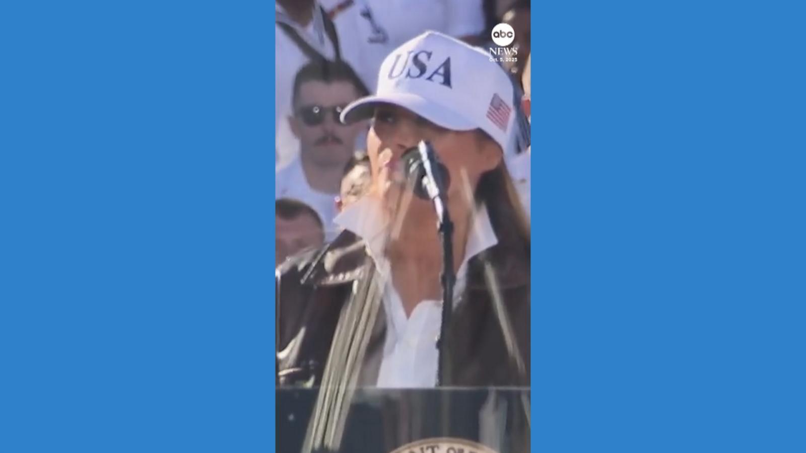First lady Melania Trump greeted sailors with a “hooyah” as she spoke at an event celebrating the U.S. Navy’s 250th anniversary in Norfolk, Virginia.