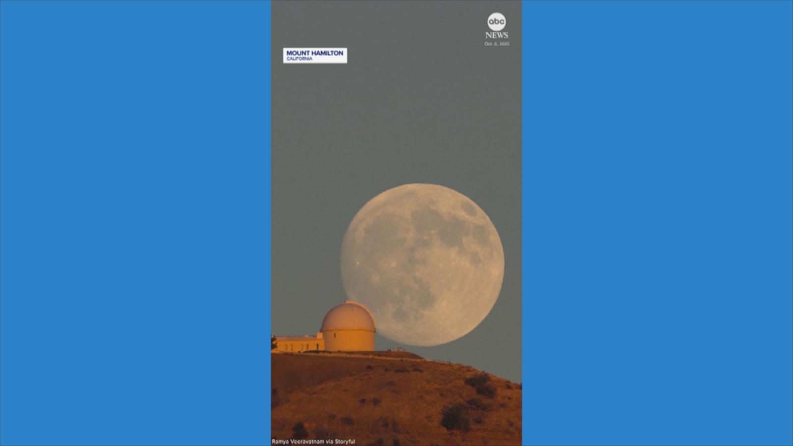 Time-lapse imagery captured the nearly full moon, a forerunner to the harvest supermoon, rising and setting over U.S. cities.