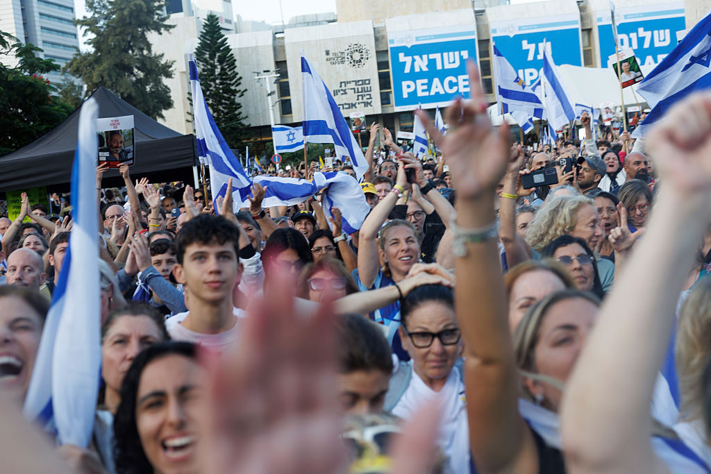 Joy abounds in Israel as Hamas freed seven living Israeli hostages from the Gaza Strip on Monday morning, following a US-led deal reached late last week. (Kobi Wolf/Bloomberg via Getty)