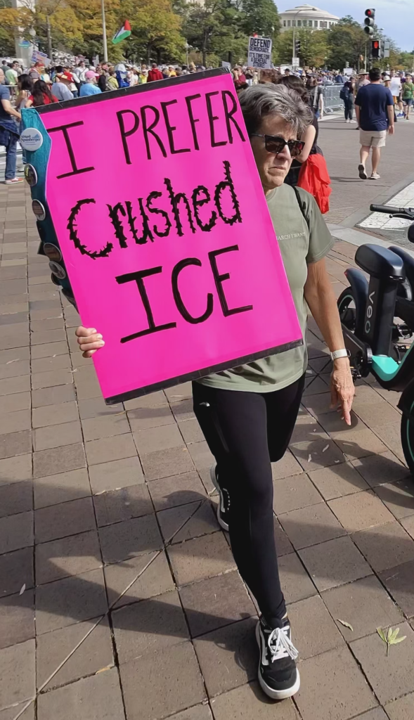 Leftist activists attend the “No Kings” protest in Washington, DC, on Saturday, October 18, 2025. (Matthew Perdie / Breitbart News)