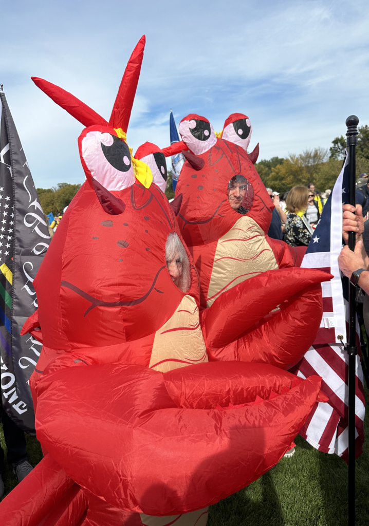 Leftist activists in lobster attire attend the “No Kings” protest in Washington, DC, on Saturday, October 18, 2025. (Matthew Perdie / Breitbart News)