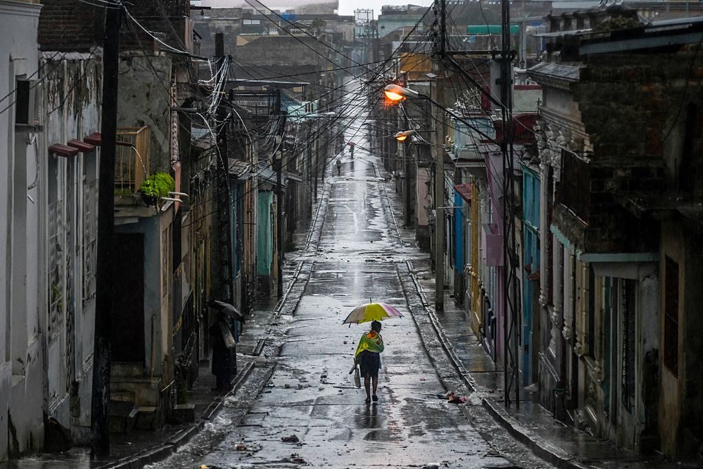 A woman walks in a street before Hurricane Melissa hits the city of Santiago de Cuba, Cuba on October 28, 2025. ( YAMIL LAGE/AFP via Getty)