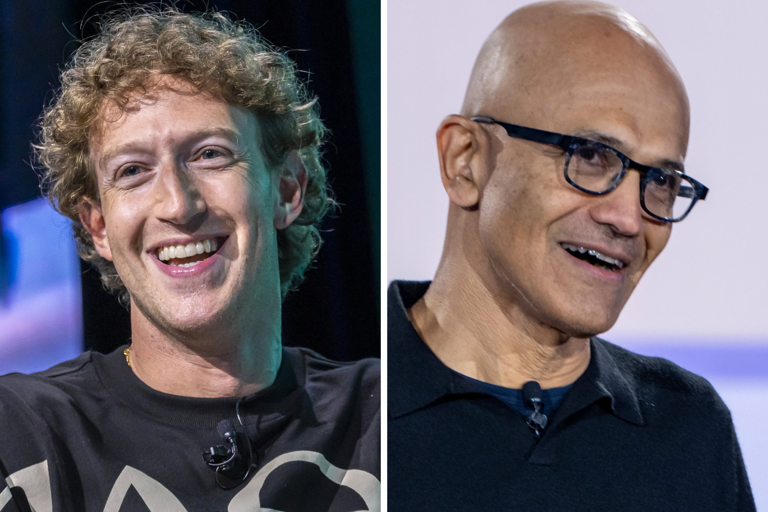 META CEO Mark Zuckerberg (L) and Microsoft CEO Satya Nadella.