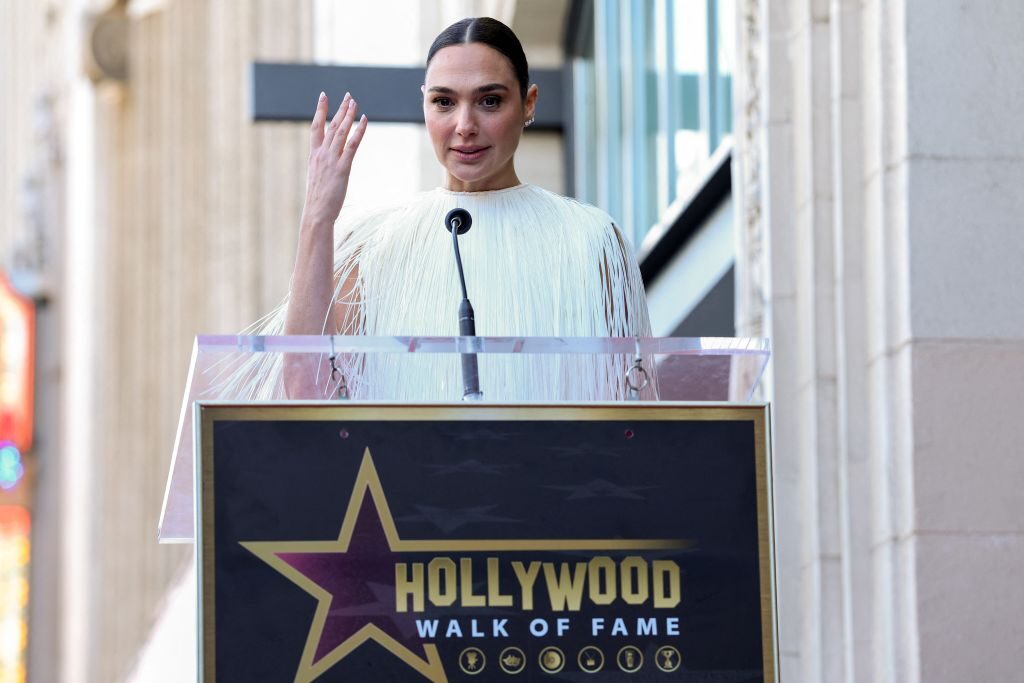 Israeli actress Gal Gadot speaks at her Hollywood Walk of Fame Star Ceremony in front of El Capitan in Los Angeles, California, on March 18, 2025. (VALERIE MACON/AFP via Getty Images)