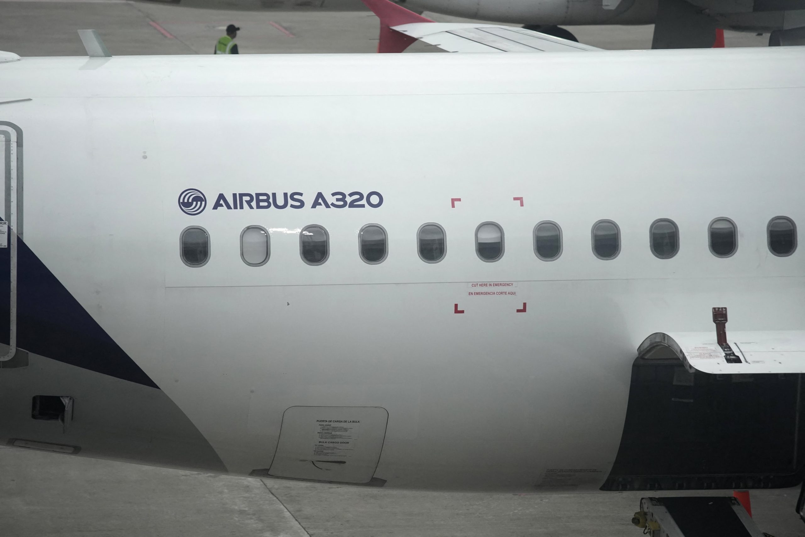 A Latam Airlines Airbus A320 sits on the tarmac at El Dorado airport in Bogota on Nov. 28, 2025.