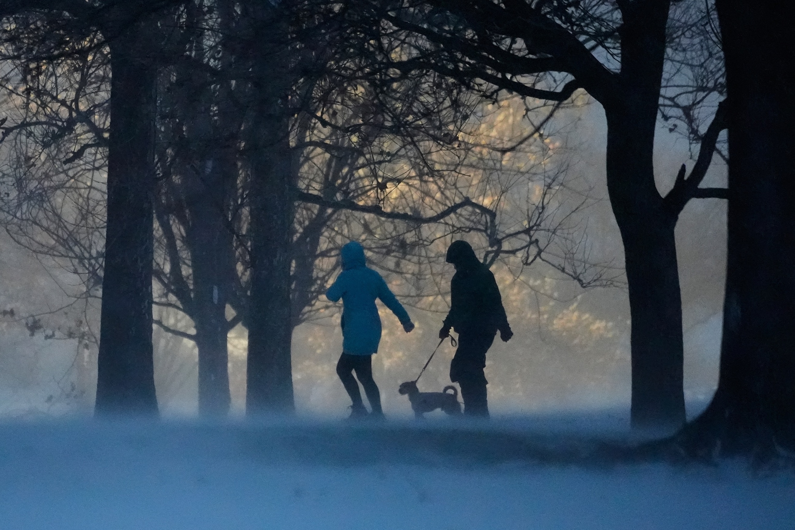Bundled up people walk their dog Saturday, Nov. 29, 2025, in Chicago, Illinois.Kiichiro Sato/AP