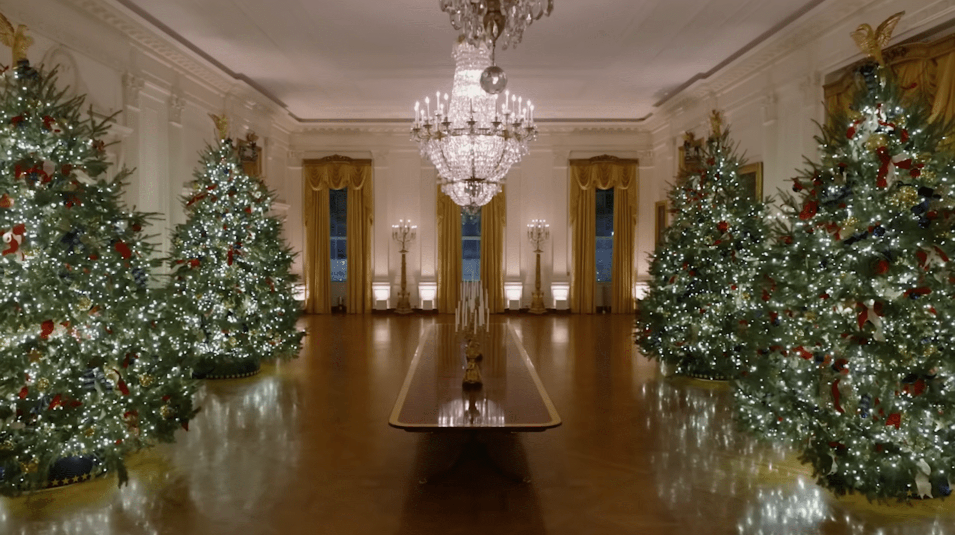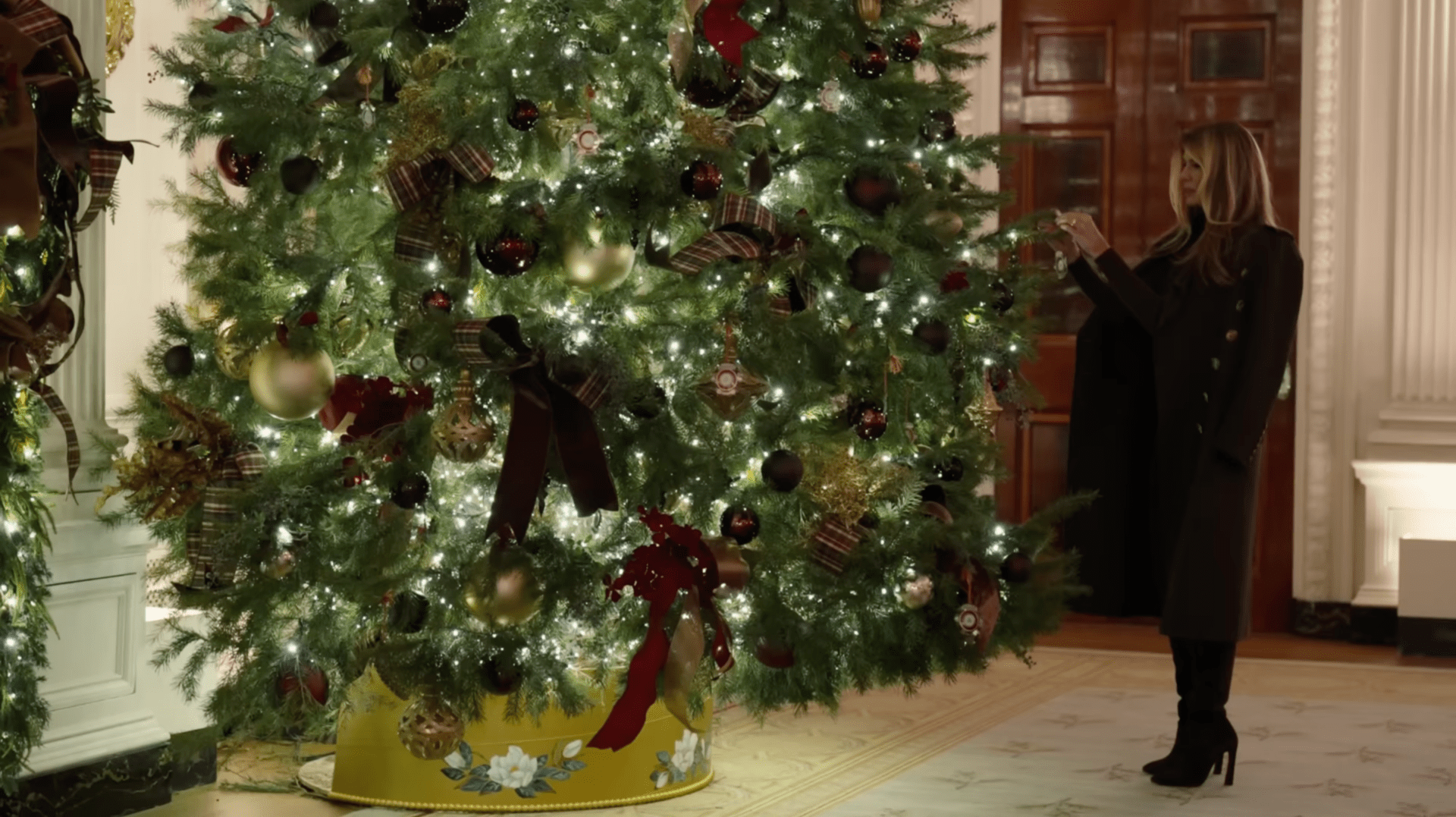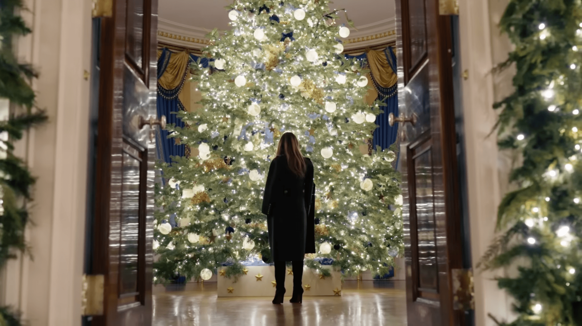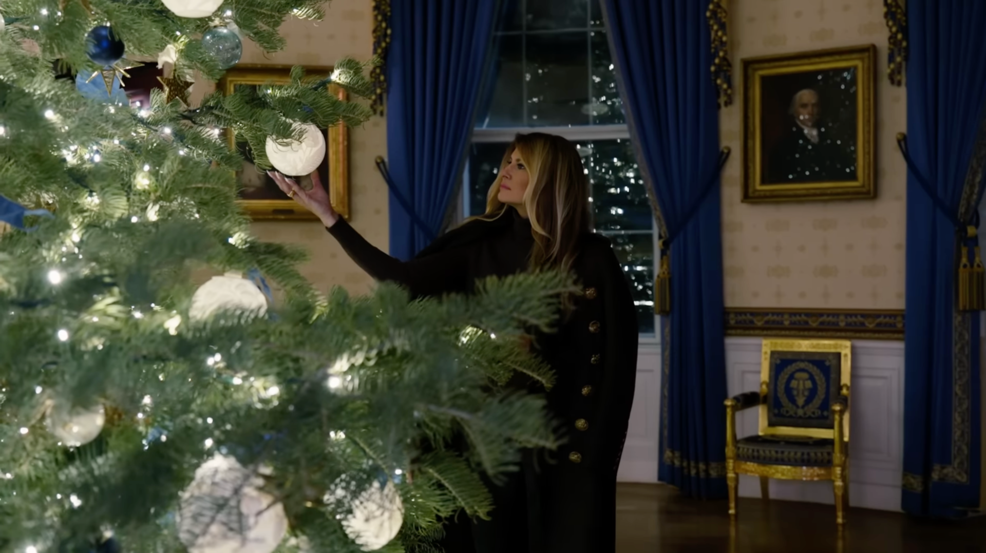 Fashion Notes: Melania Trump Unveils White House Christmas Decorations in Burberry Military Coat