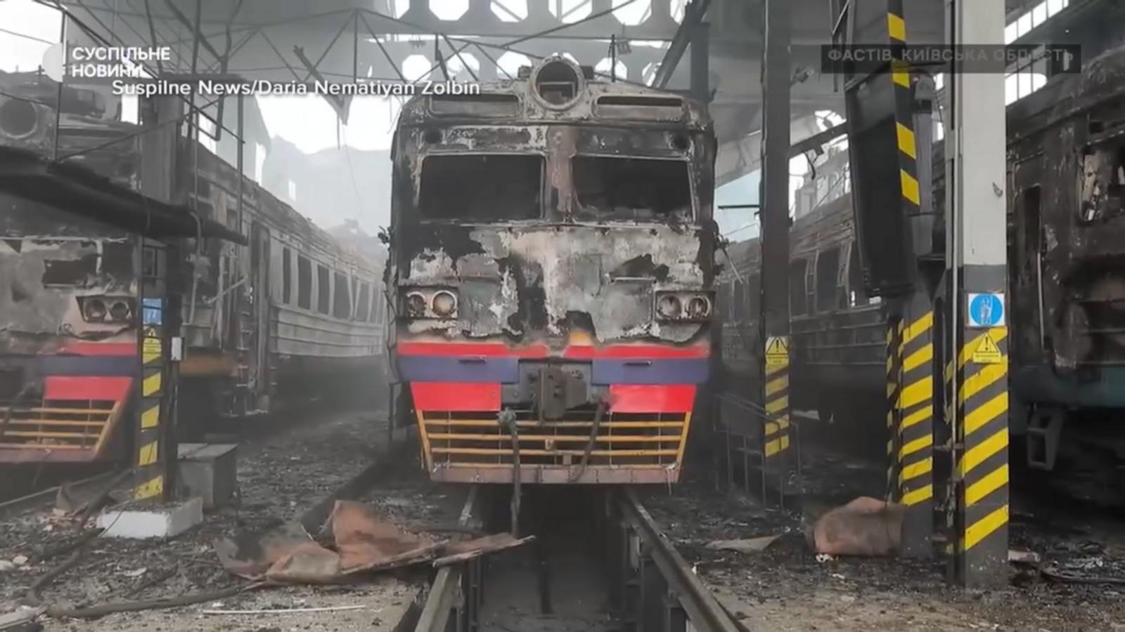 Britt Clennett reports on the damage at a railway station in Fastiv, Ukraine. Russia’s latest overnight bombardment consisted of more than 700 projectiles.