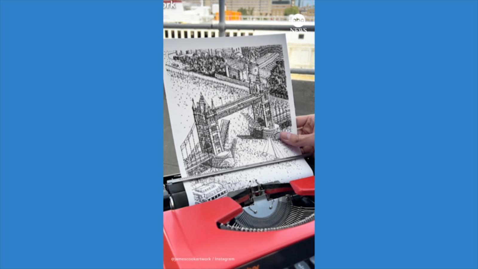 Some artists paint with oil or acrylic. Others mold clay, sculpt stone or draw with charcoal. English artist James Cook’s chosen medium is a typewriter.