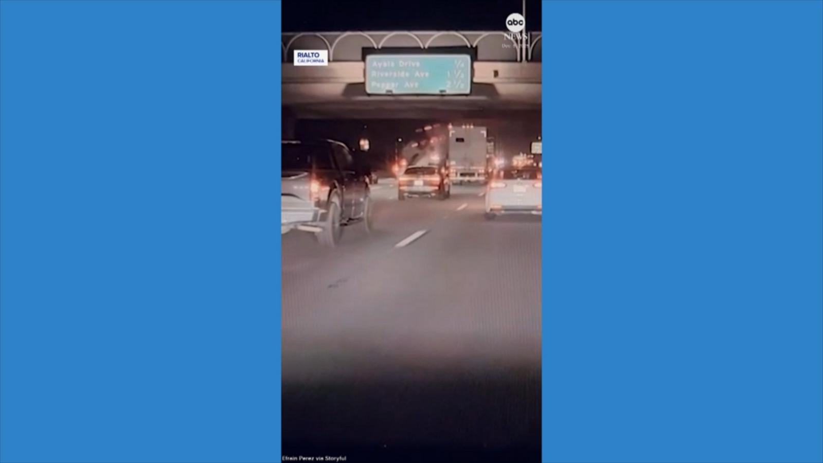 Dashcam footage captured the moment a truck plunged off an overpass in Rialto, California.