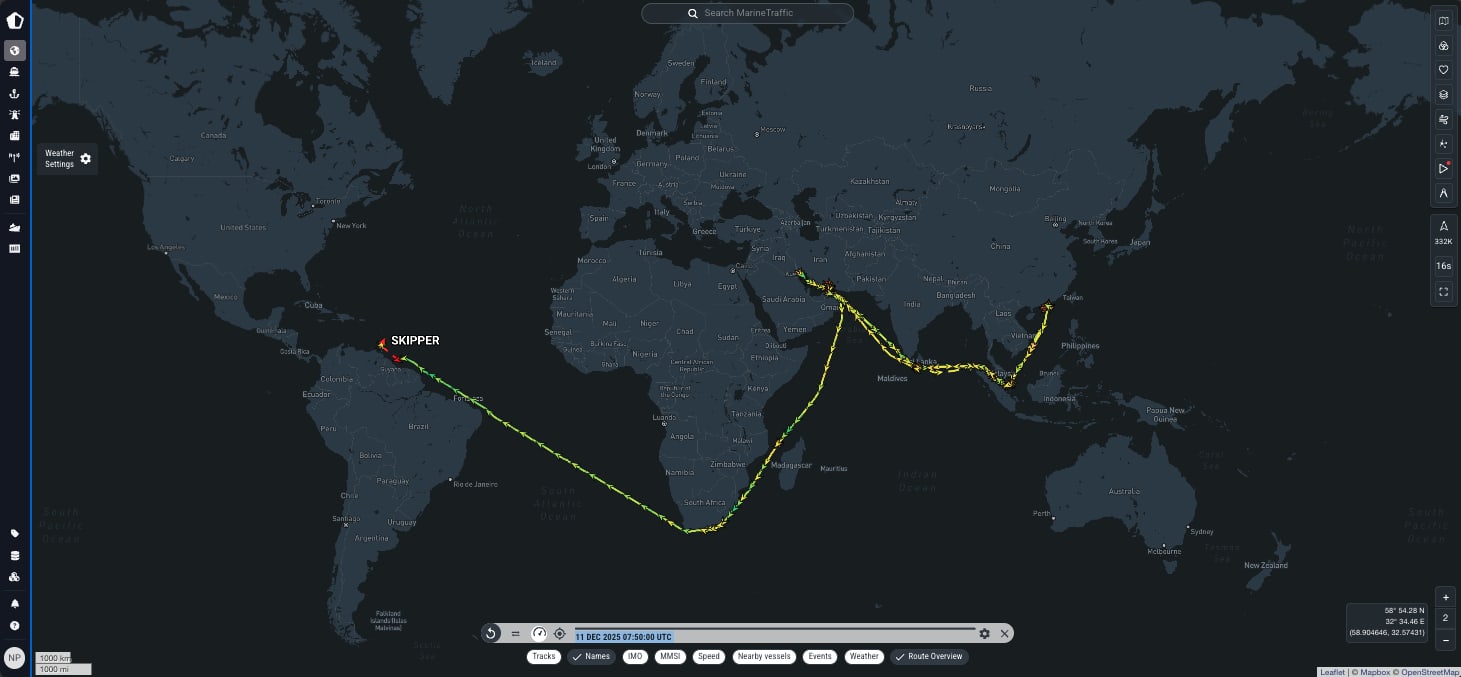 And data suggests that the Guyana-flagged tanker identified as “Skipper” since 2022 has carried sanctioned oil from Iran and Venezuela.