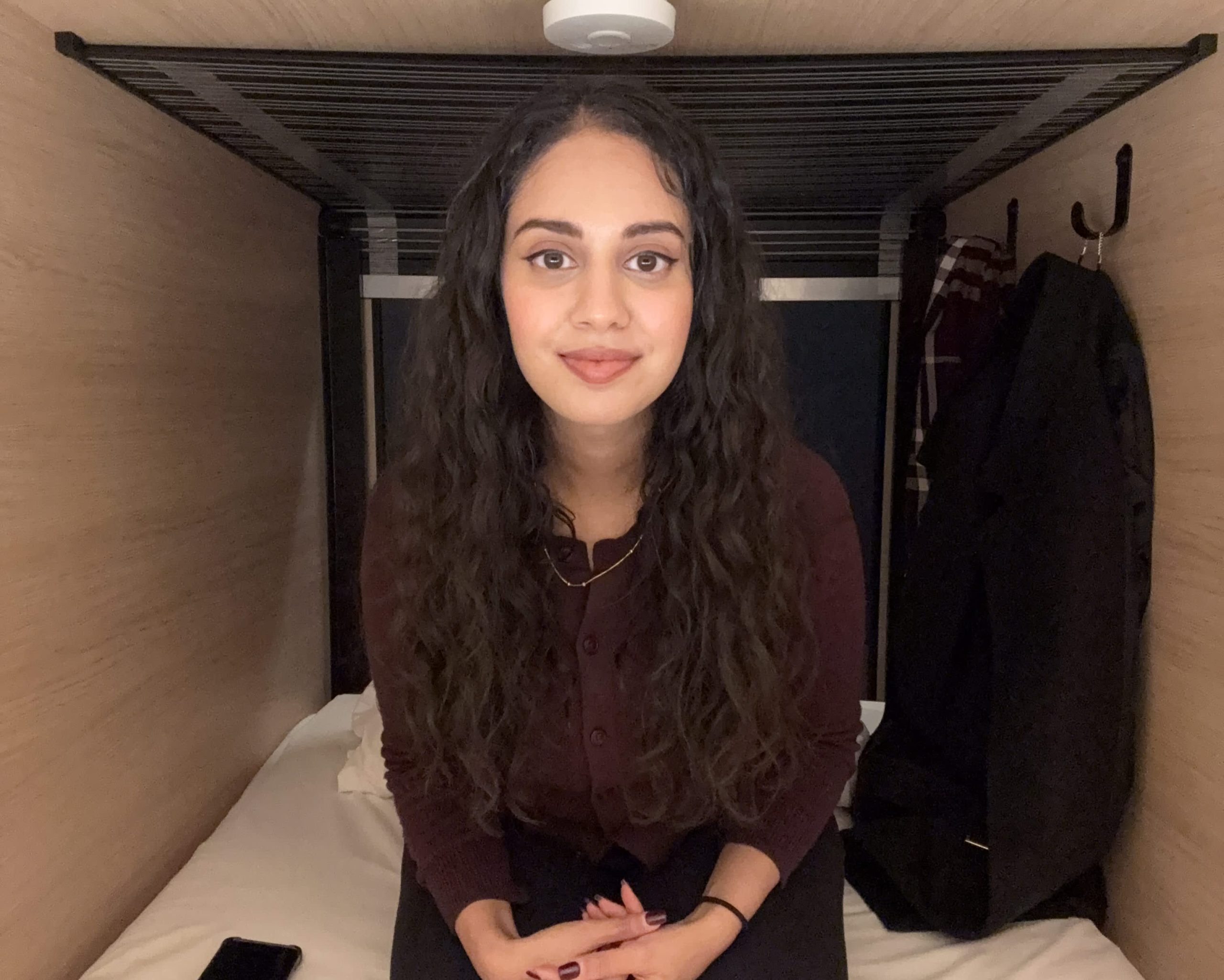 It’s a Monday evening, and instead of my usual work-from-home routine, which involves preparing to go into the office the next day, I’m crawling into a brightly lit sleeping pod.