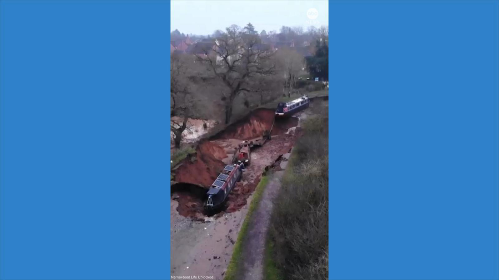 A hole emerged on a British canal, sending boats tipping over the edge and stranding them.