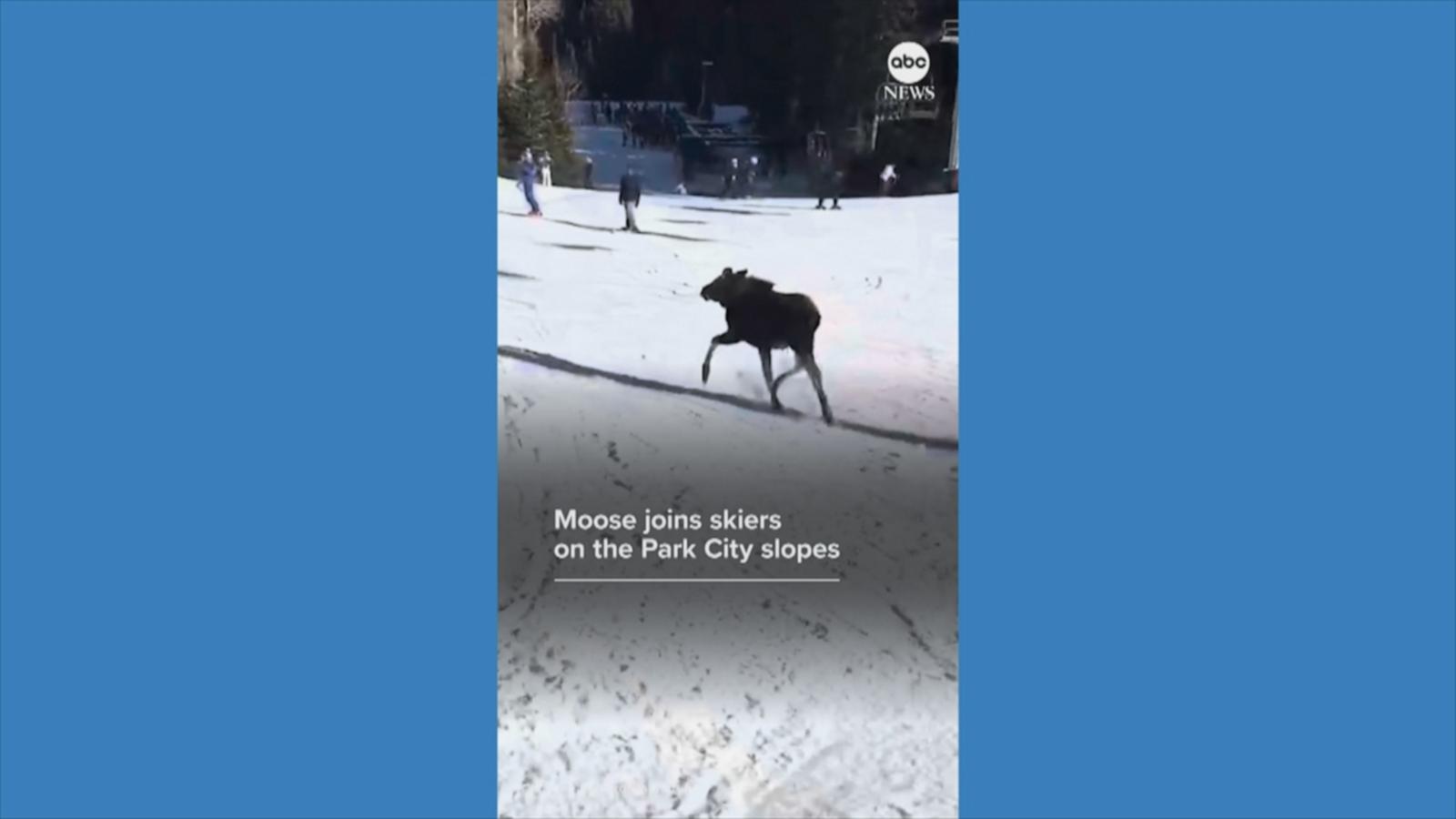 Skiers stopped to admire a young moose galloping down the slopes at Utah’s Park City Mountain Resort.