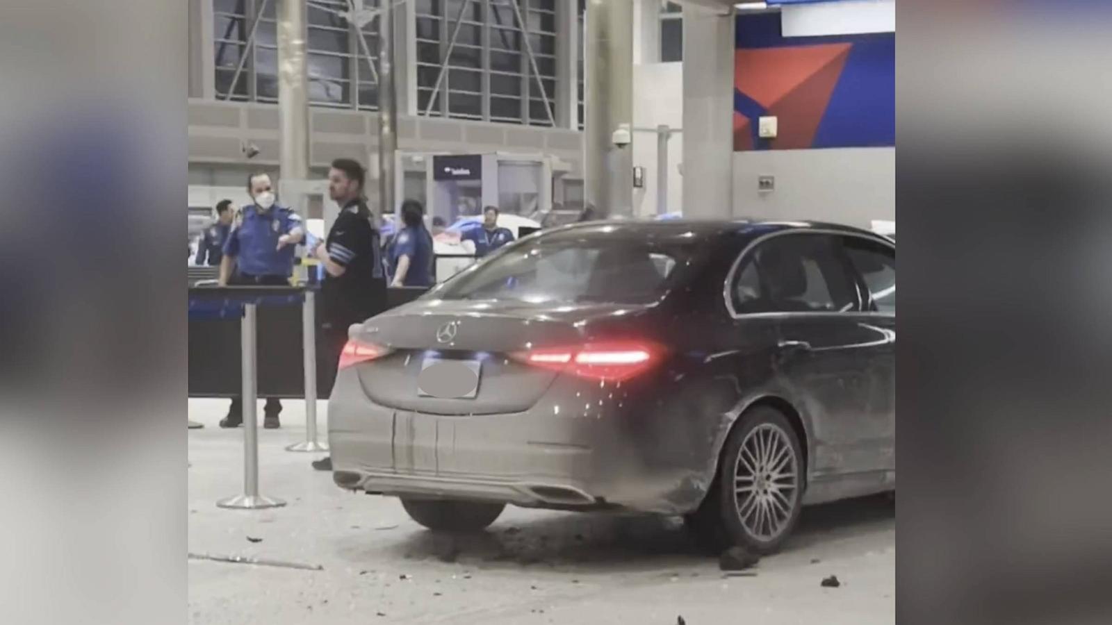 The car crashed into a ticket counter inside the terminal, authorities said.