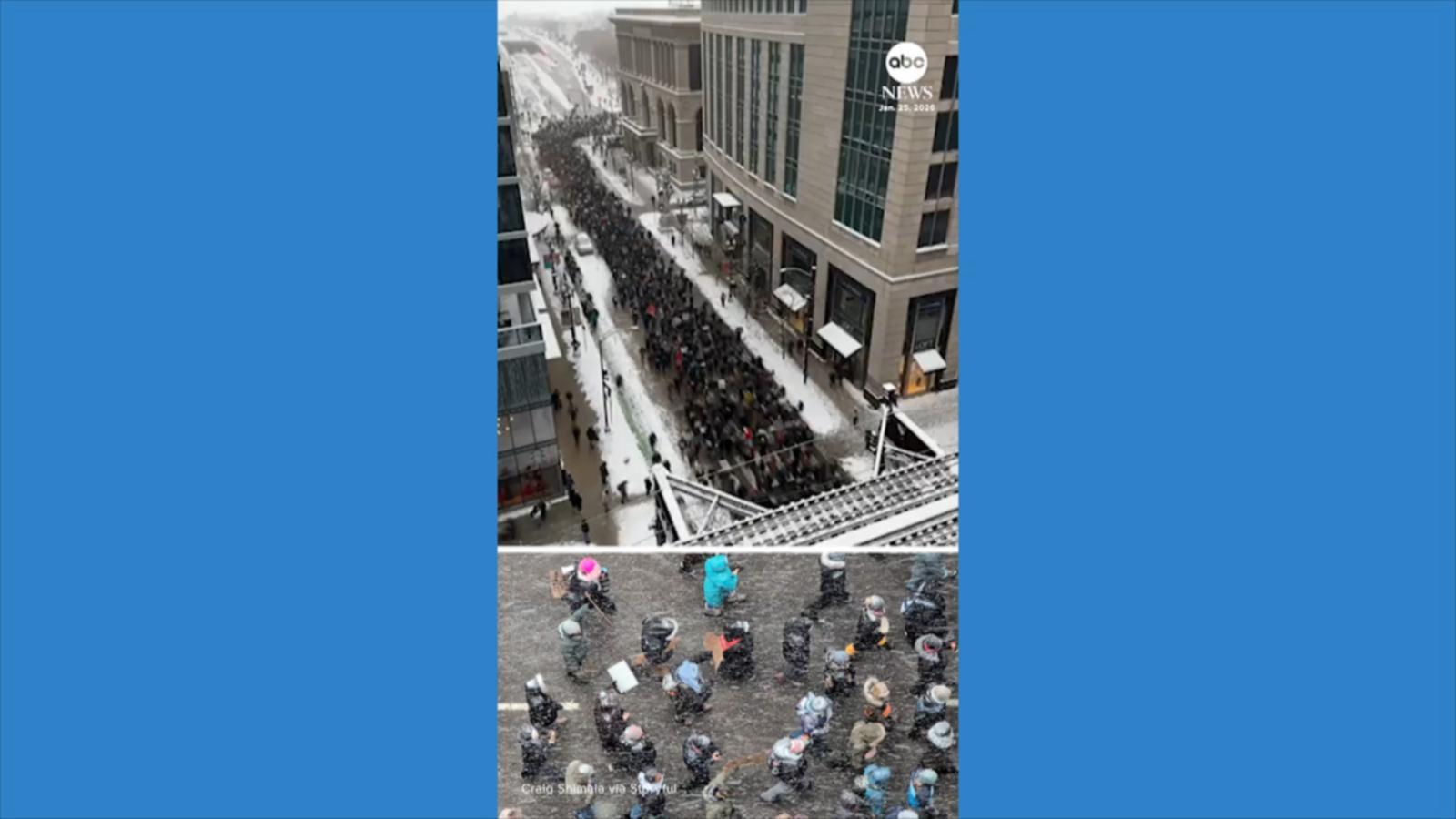 Anti-ICE protesters took to the snowy streets of Chicago on Sunday, one day after the fatal shooting of Alex Pretti in Minneapolis.