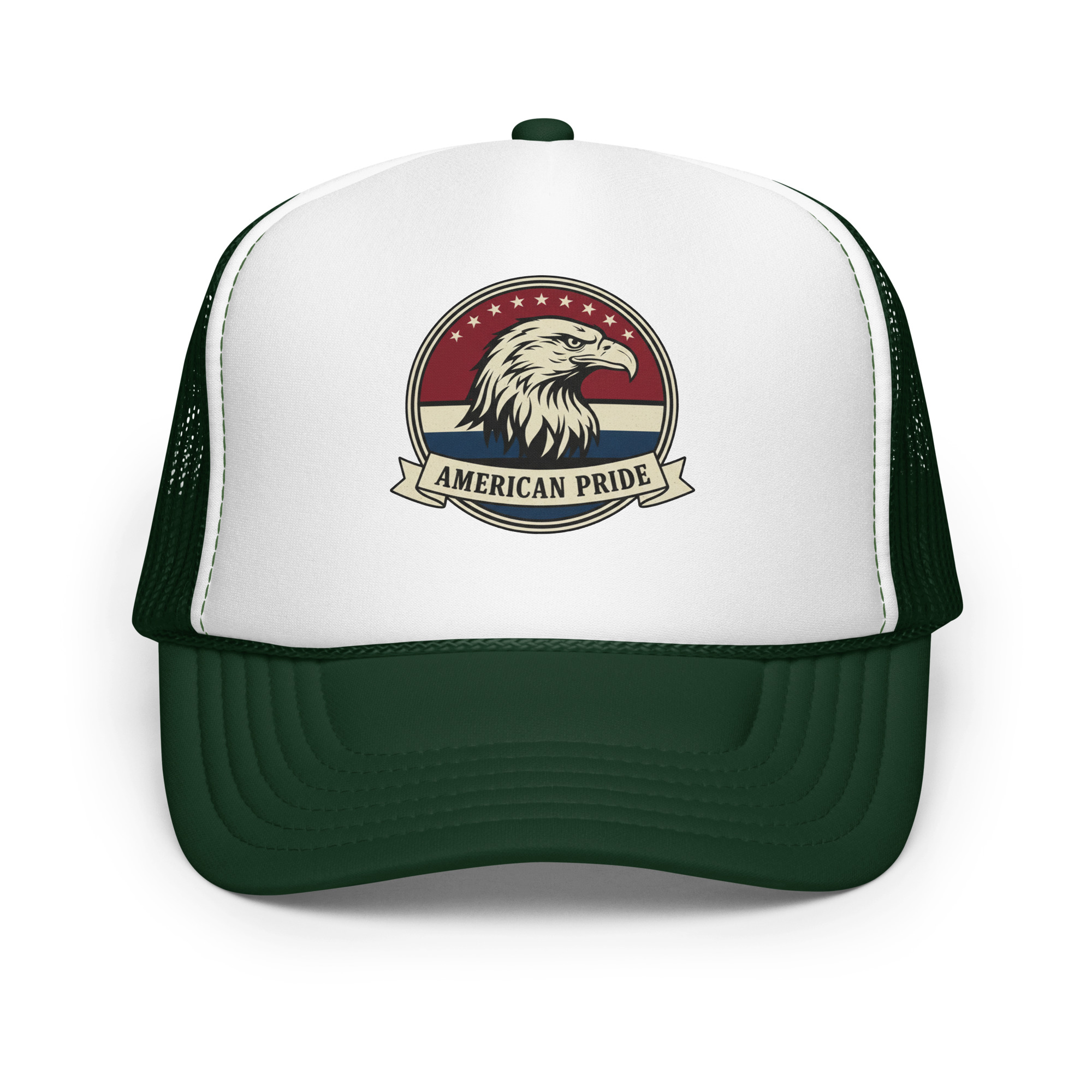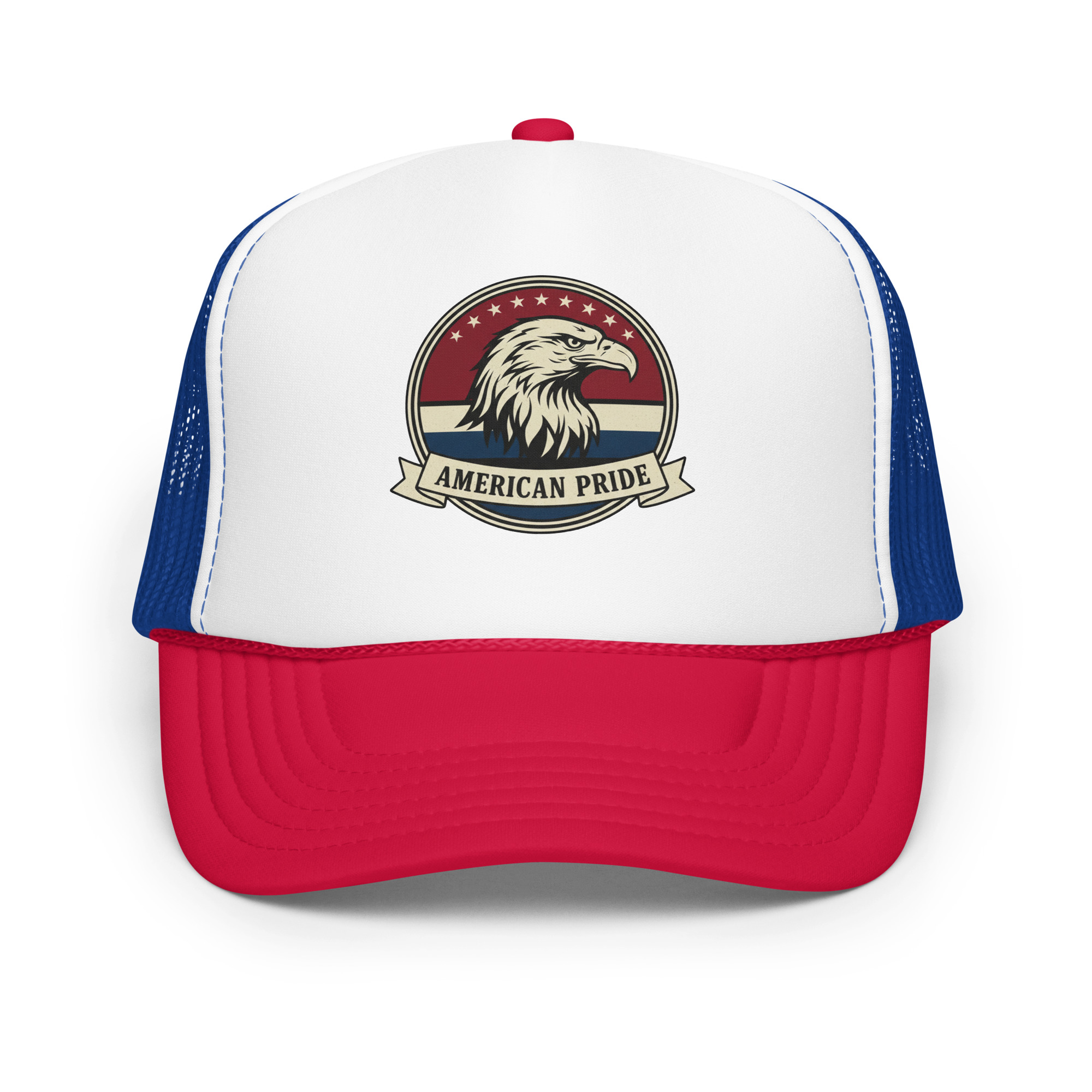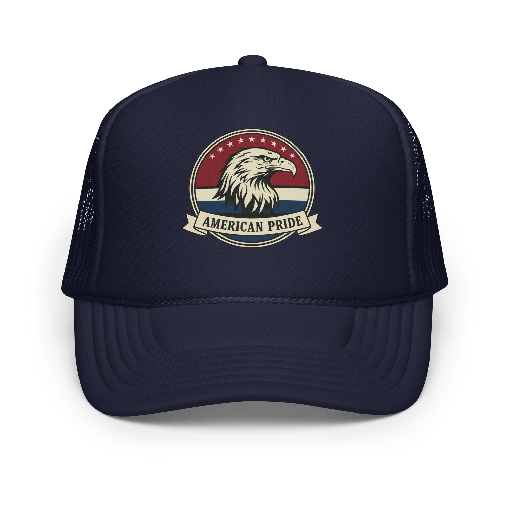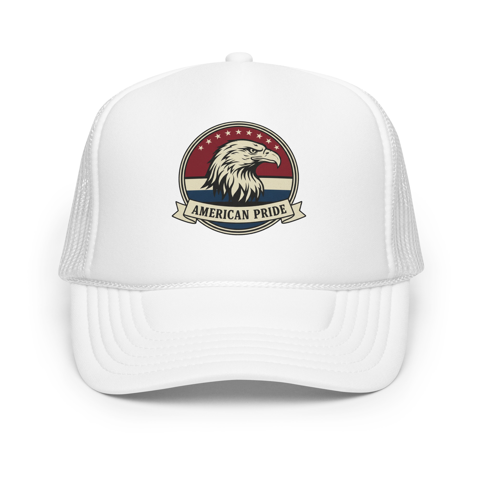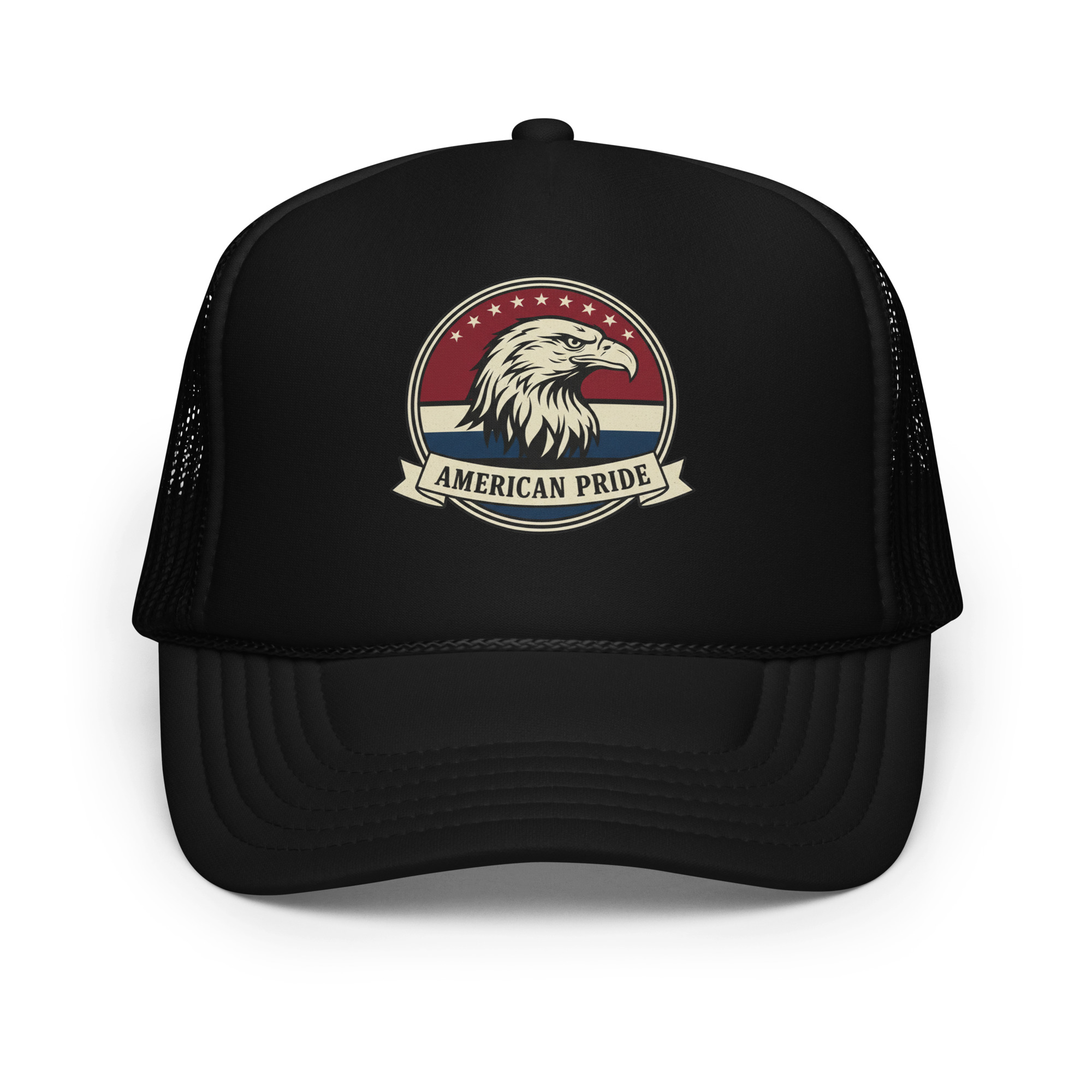 The American Pride Freedom Foam Trucker is built to stand out — just like the values behind it. High-profile structure. Clean front panel. Breathable mesh back.